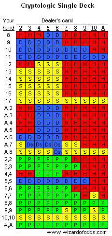 Key to basic strategy: H=Hit S=Stand D=Double if allowed, otherwise hit Ds=Double if allowed, otherwise stand P=Split